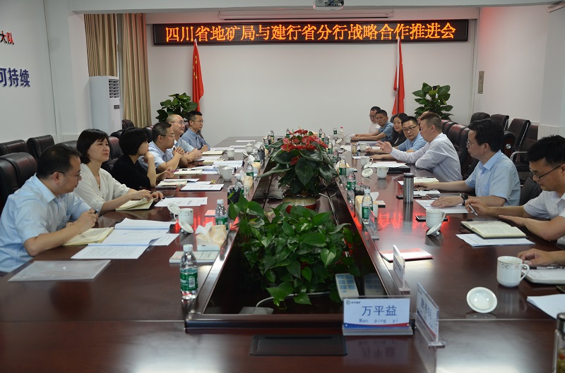 5月31日,省地矿局与建设银行四川省分行战略合作推进会在六O五大队召开,受局党委书记、局长王建明委托,局党委委员、副局长李成冰主持会议并讲话,建设银行四川省分行机构业务部总经理杨磊出席会议并致辞。双方围绕战略合作推进情况,聚焦地勘单位改革涉及的融资问题进行了深度交流探讨。