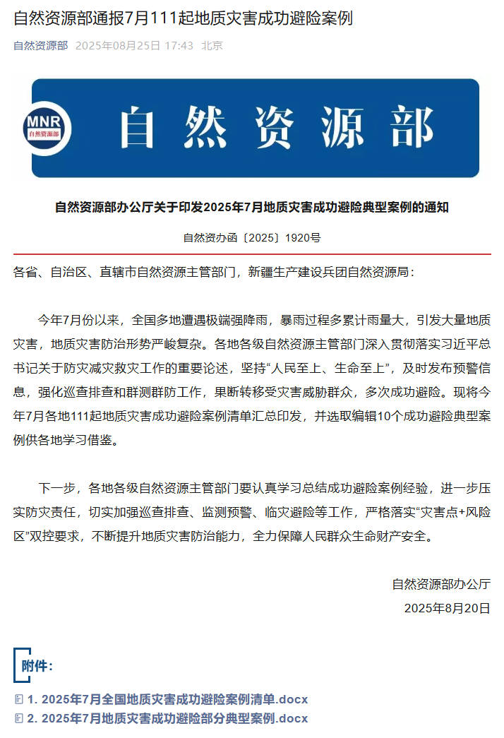 近日,自然资源部办公厅印发2025年7月地质灾害成功避险典型案例的通知,公布了全国111起成功避险案例,并重点选取编辑了10起典型案例供各地学习借鉴。PG娱樂城官方直营共参与四川24起案例中的13起,其中驻守督导并成功预警的叙永“7·24”红洞桥村滑坡避险案例入选10起典型案例。