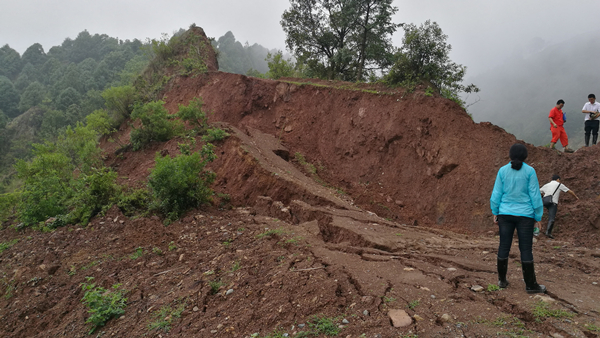 看到技术人员到达了现场,当地干部和百姓们仿佛看到了救星,纷纷围拢来,七嘴八舌的提出了对滑坡的焦虑。在详细察看后,出于职业的敏感,李杰豪意识到这里已经很危险了,立即提醒大家:“滑坡变形已明显加剧,大家赶紧撤离!注意安全!”。说话间,在他前方10多米处,一块约1立方米大的石块从山顶滚落,瞬间砸倒几间房屋。在排查组的指挥下,现场人员安全有序的撤离到了安全地带。